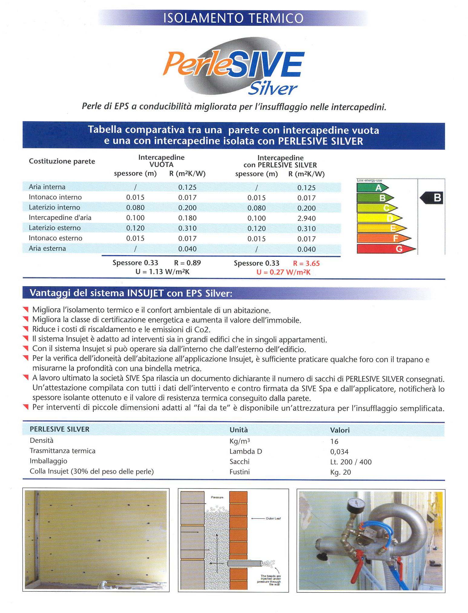 In questo allegato si trovano sia una tabella comparativa tra una parete con intercapedine vuota e una con intercapedine isolata con perlesive silver e anche un elenco di vantaggi di questa soluzione di isolamento termico che riassumiamo: