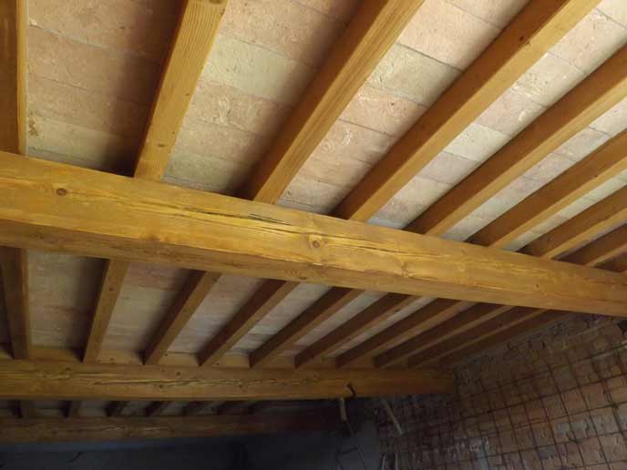 Nella seconda foto si nota un intrevento all’interno, su soffitto in cotto e travi nuove in legno.